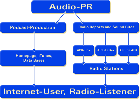 We offer you various possibilities of turning your topic into a radio report and getting it played on a maximum number of stations. For information on our radio service packages please click here.